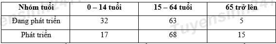 Cho bảng số liệu: CƠ CẤU DÂN SỐ THEO NHÓM TUỔI, GIAI ĐOẠN 2000 – 2005 (Đơn vị: %) Để thể