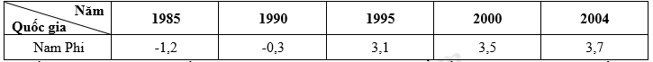 Cho bảng số liệu: TỐC ĐỘ TĂNG GDP CỦA MỘT SỐ NƯỚC Ở CHÂU PHI, GIAI ĐOẠN 1985 – 2004 (Đơn