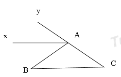b) Vận dụng định lý góc ngoài của một tam giác để tính góc \(\angle BAy\), sau đó chỉ ra \(\widehat {ABC}\)= \(\widehat {BAx}\) = 400 , mà hai góc này ở vị trí so le trong, do đó: Ax // BC.