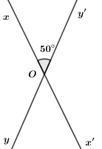 Đường thẳng \(xx'\) cắt đường thẳng \(yy'\) tại \(O,\) biết \(\widehat {xOy'} = 50^\circ ,\) số đo