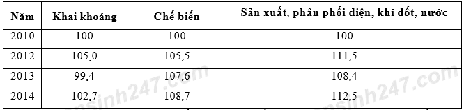 Cho bảng số liệu sau TỐC ĐỘ TĂNG TRƯỞNG MỘT SỐ SẢN PHẨM CÔNG NGHIỆP CỦA NƯỚC TA