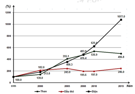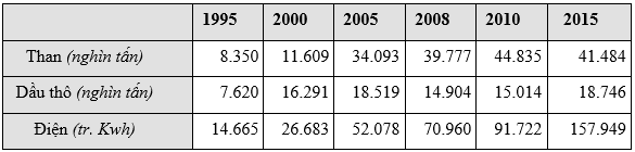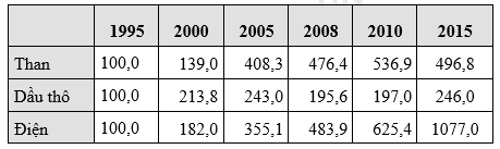 a) Vẽ biểu đồ thích hợp nhất thể hiện tốc độ tăng trưởng sản lượng một số ngành công nghiệp nước ta giai đoạn 1995 - 2015.