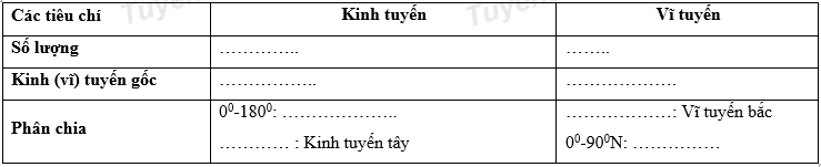 Kinh tuyến là gì? Vĩ tuyến là gì? Dựa vào kiến thức đã học, hãy hoàn thành bảng