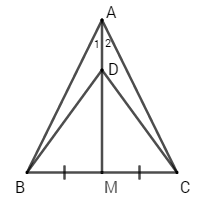 Cho \(\Delta ABC\) cân tại \(A,\) trung tuyến \(AM.\) Gọi \(D\) là một điểm nằm giữa \(A\) và