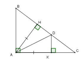 + Sử dụng tính chất hai tam giác bằng nhau để chứng minh \(AD\) là tia phân giác của góc \(HAK.\)