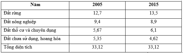 Cho bảng số liệu: HIỆN TRẠNG SỬ DỤNG TÀI NGUYÊN ĐẤT CỦA NƯỚC TA (Đơn vị: triệu
