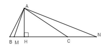 Cho \(\Delta ABC\) có \({90^0} > \widehat B > \widehat C\). Kẻ \(AH \bot BC\left( {H \in BC} \right)\). Gọi \(M\) là một điểm nằm giữa \(H\) và \(B,\)\(N\) thuộc tia đối của tia \(CB.\) Chọn câu đúng.