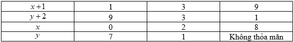 Cho \(x + 1\) (hoặc \(y + 2\)) lần lượt bằng các ước của 9.