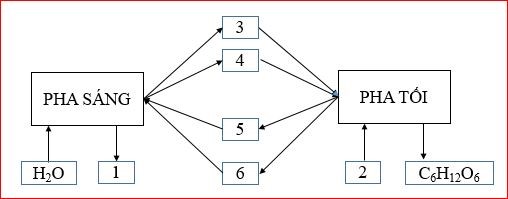 Hãy điền các chất cần thiết vào vị trí các số trong hình. Vì sao trong quang hợp pha sáng bị ức chế thì pha tối sẽ bị dừng lại và ngược lại pha tối bị ức chế thì pha sáng cũng sẽ bị dừng lại?