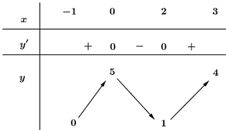 Hàm số \(y = f(x)\) liên tục và có bảng biến thiên trên đoạn \(\left[ { - 1;3} \right]\) cho trong