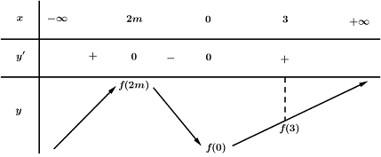 - Chia từng TH vị trí của 3 so với các nghiệm của phương trình \(y' = 0\), lập BBT trong mỗi TH.