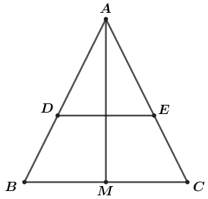 Cho tam giác \(ABC\) cân tại \(A\), đường trung tuyến \(AM\). Một đường thẳng song song với \(BC\) cắt \(AB\) và \(AC\) lần lượt tại \(D\) và \(E\). Chứng minh rằng: