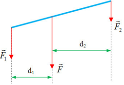 \({d_{1\;}}\) là khoảng cách từ giá của hợp lực tới giá của lực \(\overrightarrow {{F_1}} \)