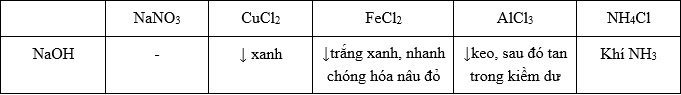 Có 5 lọ mất nhãn đựng các dung dịch: NaNO3, CuCl2, FeCl2, AlCl3, NH4Cl. Dùng dung dịch nào để