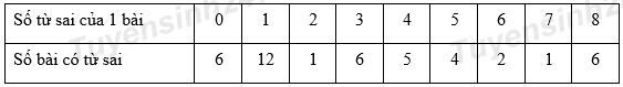 Kết quả số từ dùng sai trong các bài văn của học sinh lớp 7 được cho trong bảng sau: