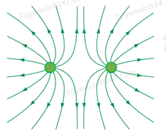 Trên hình bên có vẽ một số đường sức của hệ thống hai điện tích điểm \(A\) và \(B\).
