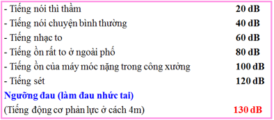 Ngưỡng đau (làm đau nhức tai) của con người vào khoảng: