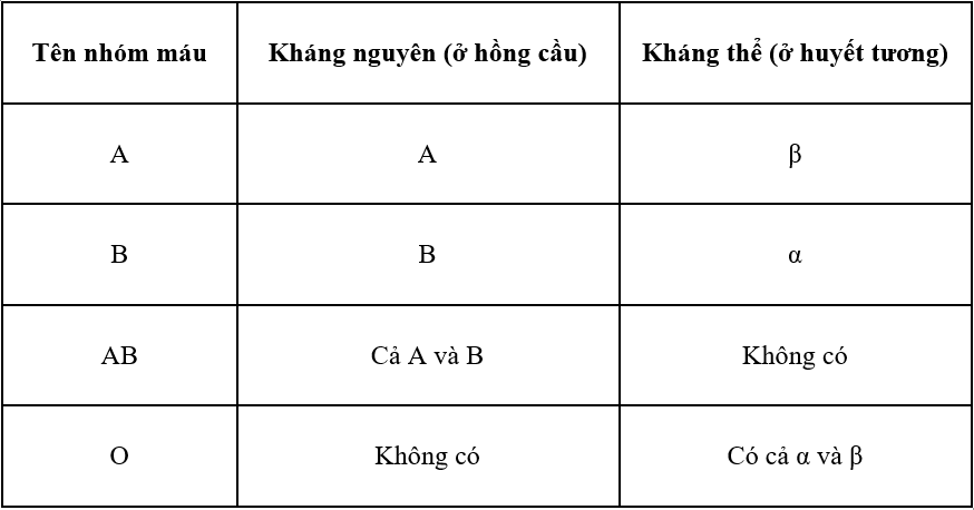 Nhóm máu nào dưới đây tồn tại cả hai loại kháng nguyên A và B trên hồng cầu?