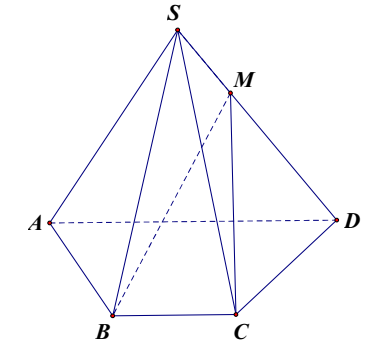 Cho hình chóp \(S.ABCD\) có đáy \(ABCD\) là hình thang có đáy lớn là \(AD\). Lấy điểm \(M\) thuộc