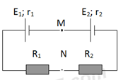 Hiệu điện thế giữa hai điểm M, N: \({U_{MN}} = {E_2} - I\left( {{r_2} + {R_2}} \right) = - {E_1} + I.\left( {{r_1} + {R_1}} \right)\)