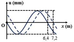 Cho một sợi dây cao su căng ngang. Làm cho đầu \(O\) của dây dao động theo phương thẳng đứng. Hình vẽ mô tả hình dạng sợi dây tại thời điểm \({t_1}\) (đường nét liền) và \({t_2} = {t_1} + 0,2s\) (đường nét đứt). Tại thời điểm \({t_3} = {t_2} + \dfrac{2}{{15}}s\) thì độ lớn li độ của phần tử \(M\) cách đầu \(O\) của dây một đoạn \(2,4\,\,m\) (tính theo phương truyền sóng) là \(\sqrt 3 \,\,cm\). Gọi \(\delta \) là tỉ số của tốc độ cực đại của phần tử trên dây với tốc độ truyền sóng. Giá trị của \(\delta \) gần giá trị nào nhất sau đây?