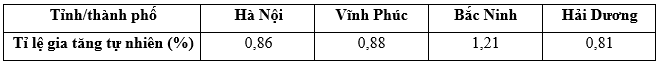 Theo bảng số liệu trên, nhận xét nào sau đây đúng khi so sánh tỷ lệ gia tăng tự nhiên giữa một số địa phương ở nước ta năm 2018?