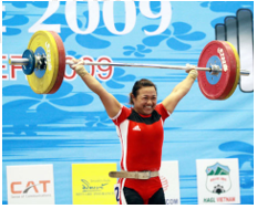 Lực sĩ cử tạ Nguyễn Thị Phương Loan của Việt Nam, huy chương vàng hạng cân 69 kg tại SEA Games