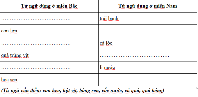 Điền từ ngữ thích hợp vào chỗ trống trong bảng theo từng cặp: