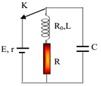 Cho mạch điện như hình vẽ, nguồn có suất điện động \(E = 12\,\,V\) điện trở trong \(r = 1\,\,\Omega \), tụ có điện dung \(C = 100\,\,\mu F\), cuộn dây có hệ số tự cảm \(L = 0,2\,\,H\) và điện trở là \({R_0} = 5\,\,\Omega \); điện trở \(R = 18\,\,\Omega \). Ban đầu \(K\) đóng, khi trạng thái trong mạch đã ổn định người ta ngắt khoá \(K\). Tính nhiệt lượng tỏa ra trên điện trở \(R\) trong thời gian từ khi ngắt \(K\) đến khi dao động trong mạch tắt hoàn toàn?