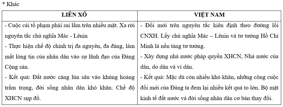 So sánh về công cuộc cải tổ của Liên Xô (3/1985) với công cuộc Đổi mới của Việt Nam