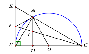 Cho nửa đường tròn tâm \(O,\) bán kính \(R,\) đường kính \(BC.\) Lấy điểm \(A\) thuộc nửa đường tròn \(\left( {A \ne B,\,\,\,C} \right)\) sao cho \(AB < AC.\) Gọi \(AH\) là đường cao của \(\Delta ABC.\)