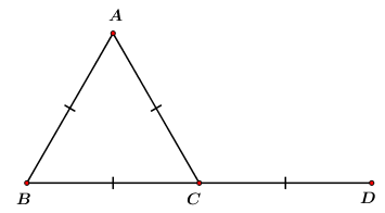 Cho hình vẽ: Biết \(AB = AC = BC = CD\). Khẳng định nào sau đây là