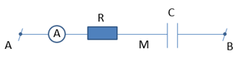 Cho mạch điện xoay chiều như hình vẽ: điện trở thuần \(R = 40\sqrt 3 \Omega \) mắc nối tiếp với một tụ điện có điện dung \(C = \dfrac{{{{10}^{ - 3}}}}{{4\pi }}\left( F \right)\) . Đặt vào hai đầu mạch một hiệu điện thế xoay chiều \(u = 200\sqrt 2 cos\left( {100\pi t + \dfrac{\pi }{6}} \right)V\) . Xác định số chỉ ampe kế ?