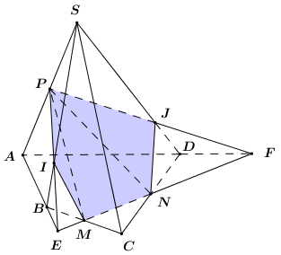 Cho hình chóp \(S.ABCD\), gọi \(M,N,P\) theo thứ tự là trung điểm các cạnh \(BC,\,\,CD\) và \(SA\). Mặt phẳng \(\left( {MNP} \right)\) cắt hình chóp \(S.ABCD\) theo thiết diện là hình gì?