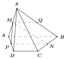 Cho tứ diện \(S.ABCD\) có đáy \(ABCD\) là hình thang có \(AB//CD\). Gọi \(M,\,\,N\) và \(P\) lần lượt