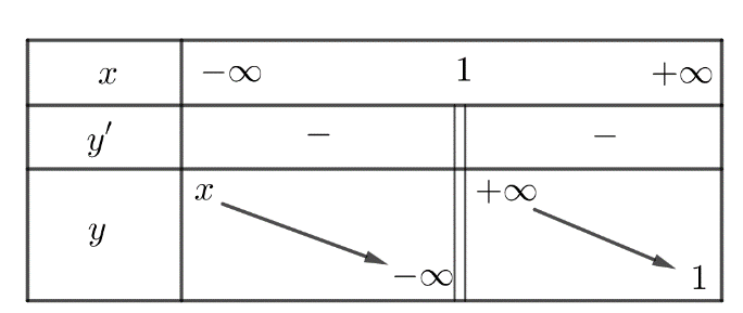 - Quan sát BBT xác định các đường tiệm cận của đồ thị hàm số, từ đó loại đáp án: Đồ thị hàm số \(y = \frac{{ax + b}}{{cx + d}}\) có \(y = \frac{a}{c}\) là tiệm cận ngang và \(x = - \frac{d}{c}\) là tiệm cận đứng.