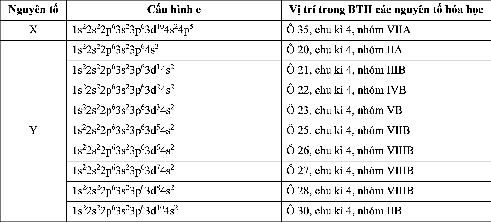 Nguyên tử của hai nguyên tố X và Y lần lượt có phân lớp ngoài cùng là 4px và 4sy. Biết X, Y