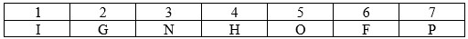 Nếu O ngồi ghế số 1 và H ngồi ghế số 7, khi đó số ghế giữa F và I phải là: