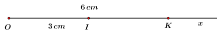 \(I\) và \(K\) là hai điểm thuộc tia \(Ox\) sao cho \(OI = 3cm;\,\,OK = 6cm\). Khi đó,