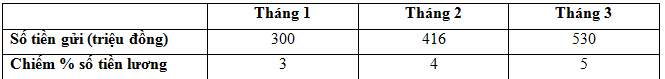- Tỷ lệ % bình quân = Tổng số tiền gửi : tổng số tiền lương
