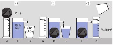 Một hòn đá không bỏ lọt bình chia độ thì người ta dùng thêm bình tràn và bình chứa để đo