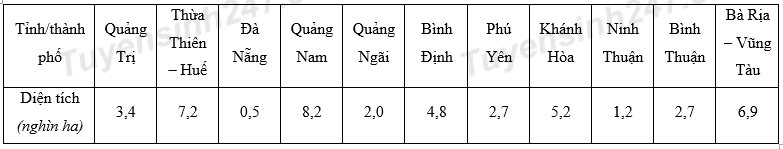 a) Vẽ biểu đồ thể hiện diện tích nuôi trồng thủy sản ở các tỉnh, thành phố của vùng Duyên hải Nam Trung Bộ.