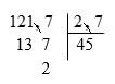 Tính phép chia \(121,7:2,7\). Thương chính là số bộ quần áo may được còn số dư là số mét vải thừa. Số bộ quần áo phải là số tự nhiên lớn hơn \(0\) nên khi tính phép chia \(121,7:2,7\), ta chỉ cần tính đến khi thương là số tự nhiên sau đó tìm số dư.