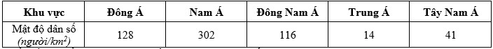 Cho bảng số liệu mật độ dân số các khu vực ở châu Á năm 2001.