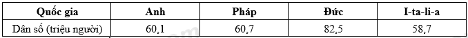 Cho bảng số liệu sau: DÂN SỐ CỦA MỘT SỐ NƯỚC TRÊN THẾ GIỚI VÀO NĂM 2005 Hãy đưa ra câu