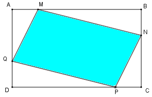 Diện tích hình bình hành \(MNPQ\) bằng diện tích hình chữ nhật \(ABCD\) trừ đi tổng diện tích của bốn hình tam giác vuông \(AMQ,\,\,BMN,\,\,CPN,\,\,DPQ\).