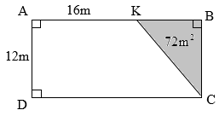 - Diện tích phần mở rộng là diện tích hình tam giác có chiều cao bằng \(12m\)(bằng chiều cao hình thang) từ đó ta tìm được đáy \(BK\).