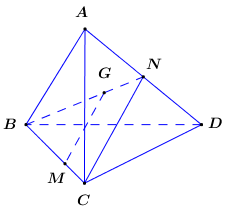 Cho tứ diện \(ABCD\), \(G\) là trọng tâm của tam giác \(ABD\), \(M\) là một điểm trên cạnh \(BC\)