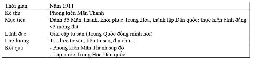 Dựa vào kiến thức đã học trong bài Trung Quốc giữa thế kỉ XIX – đầu thế kỉ XX, phần về Cách mạng Tân Hợi (1911) để trình bày những nét chính về cuộc cách mạng Tân Hợi và giải thích.