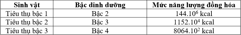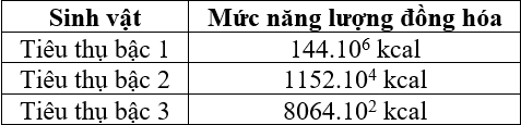 Giả sử năng lượng đồng hóa của các sinh vật dị dưỡng trong một chuỗi thức ăn như sau: